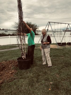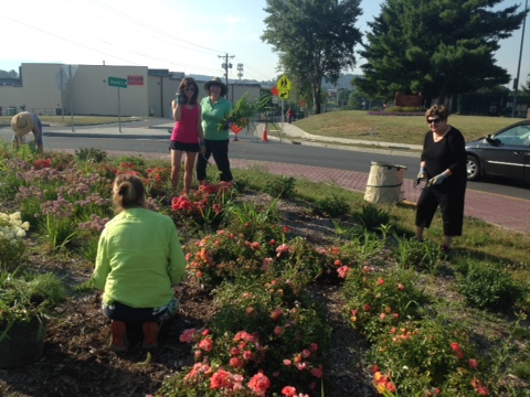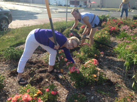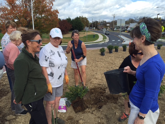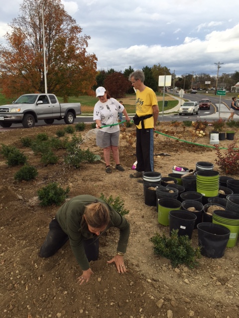Members of the Spotswood Garden Club worked to prepare the soil and begin planting: