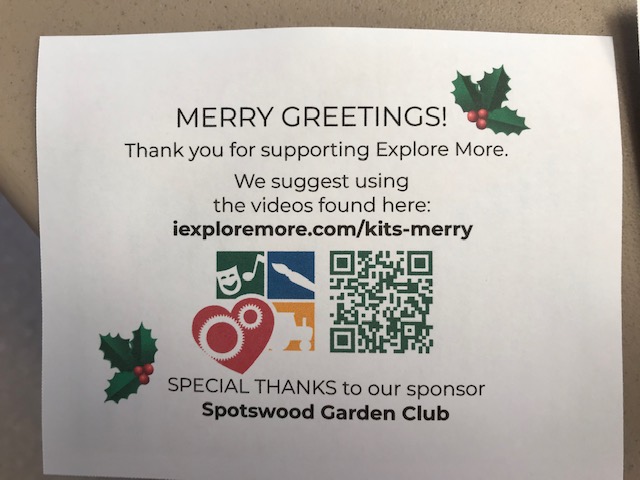 We sponsored wreath making at the Explore More Children’s Museum